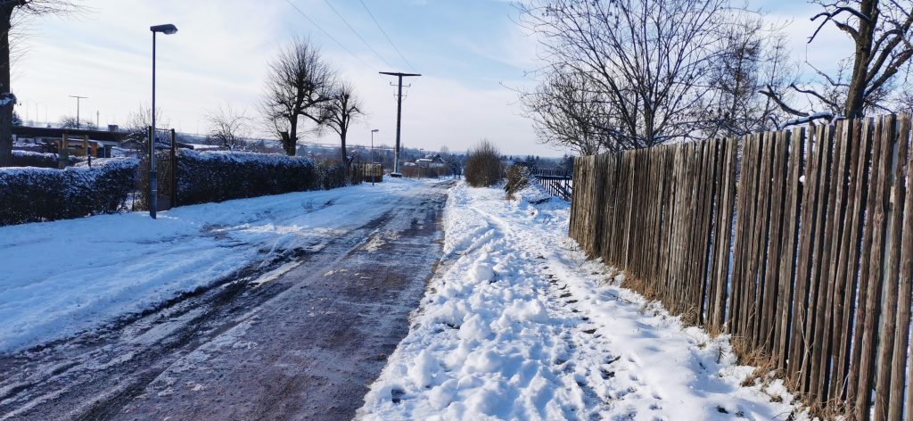 Dann liefen wir den gleichen Weg zurück, den wir zu Beginn unserer Wanderung gegangen sind. Nach etwas mehr als 3 Stunden und 12,8 km sind wir wieder zu Hause angekommen. Eine schöne Winterwanderung um Aschersleben.