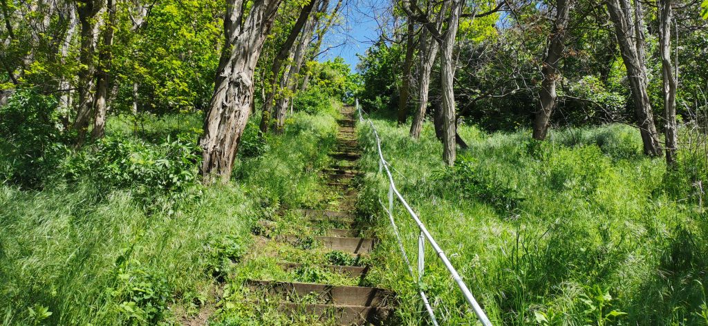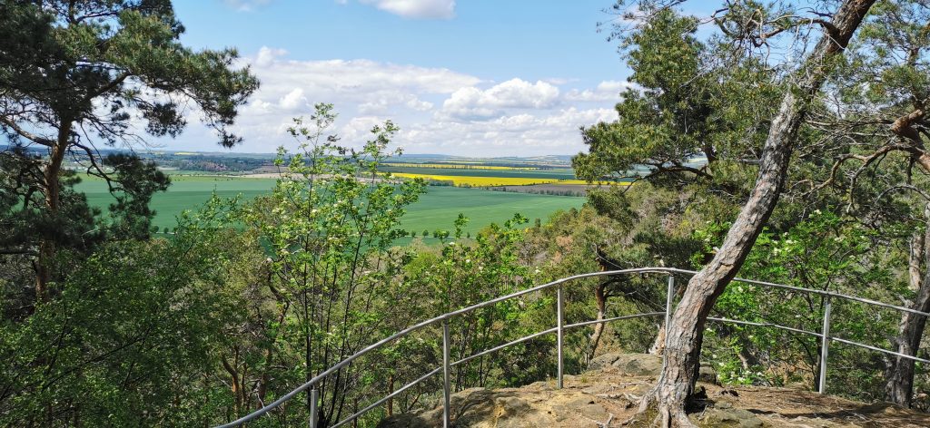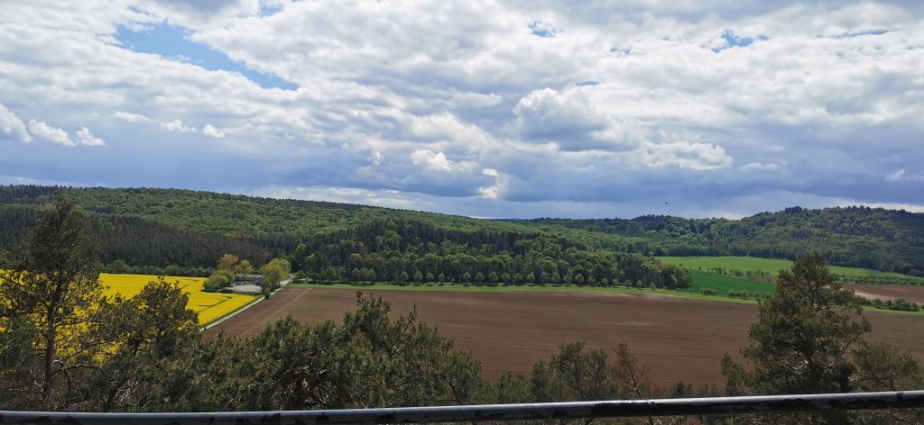 Nach ein paar hundert Metern führte unser Weg rechts entlang. Wir wollten noch die KZ-Gedenkstätte ansehen, die war aber wegen den Corona-Bedingungen geschlossen. Ein Ehepaar mit einen Wohnmobil wollte wohl auch zu der Gedenkstätte, sie parkten ihr Wohnmobil und stiegen aus. Wir liefen die Treppe hinauf, die gefühlt bis zum Himmel führte. Oben angekommen, war die Aussicht grandios.