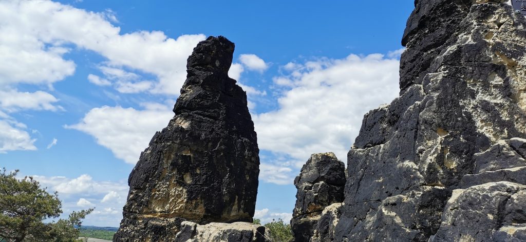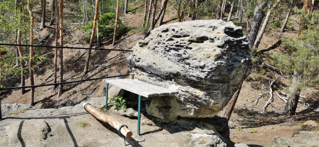 Der Gläserne Mönch, auch hier ist eine Stempelstelle „Im Schatte der Hexen“. Auf den Felsen neben dem „Gläsernen Mönch“ sind wir natürlich auch noch geklettert. Eine Familie picknickte unterhalb und ein Teil war bereits auf den Felsen geklettert. Wir warteten ab, bis wir auch hinauf konnten. Als wir wieder unten waren, kam auch das Paar von dem Wohnmobil.