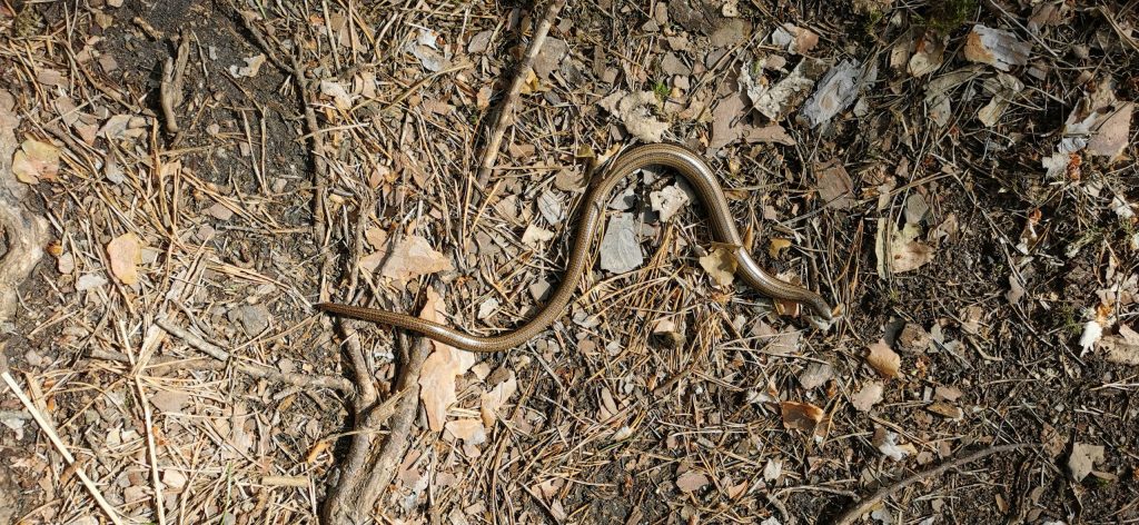 Als wir weiter liefen, sahen wir eine Blindschleiche, die schlängelte sich vor uns über den Weg.