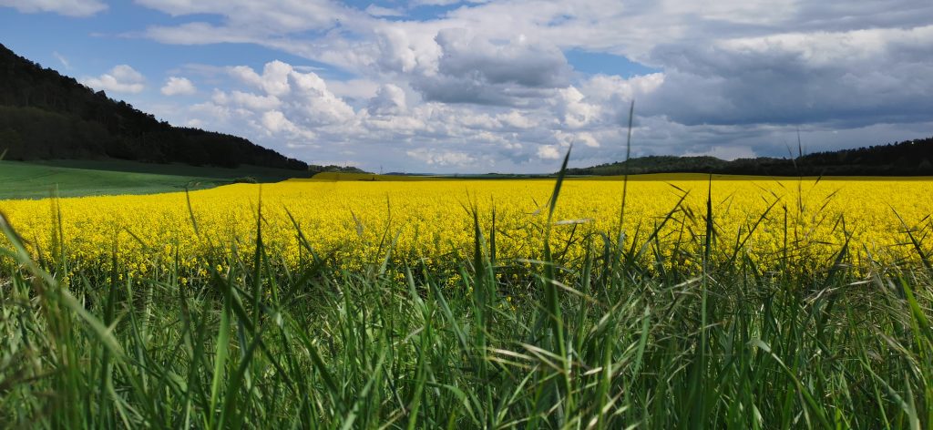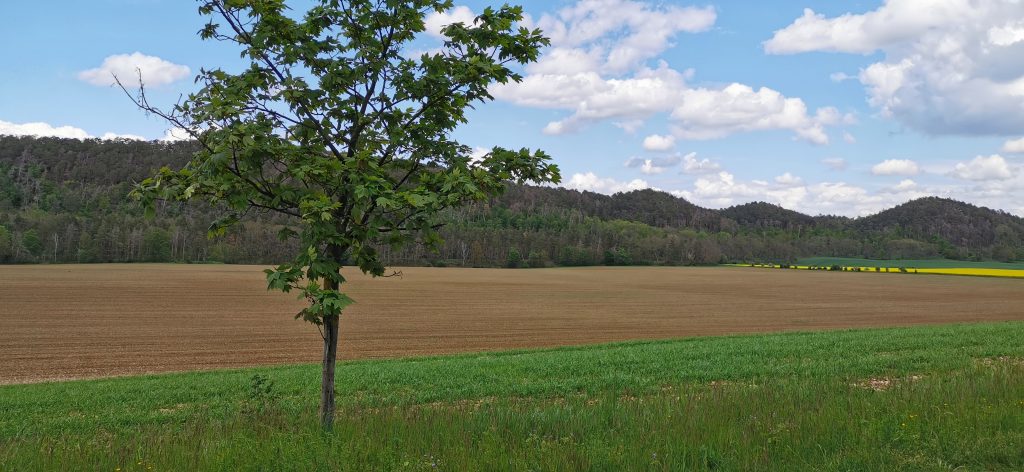 Wir liefen bis zur Schutzhütte, dann ging es scharf rechts entlang an einem Rapsfeld vorbei bis zu dieser Gedenkstätte. Diese besuchten wir heute nicht, denn auch diese sah geschlossen aus.