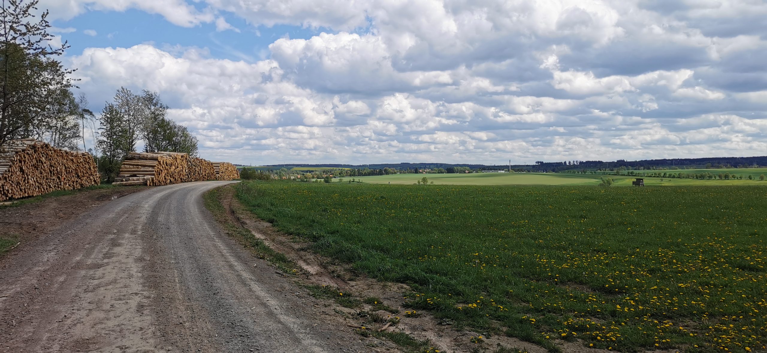 Wir genossen das Grün dieser Aue und liefen langsam weiter. Unser Weg führte uns nun wieder durch die abgeholzten Gebiete.